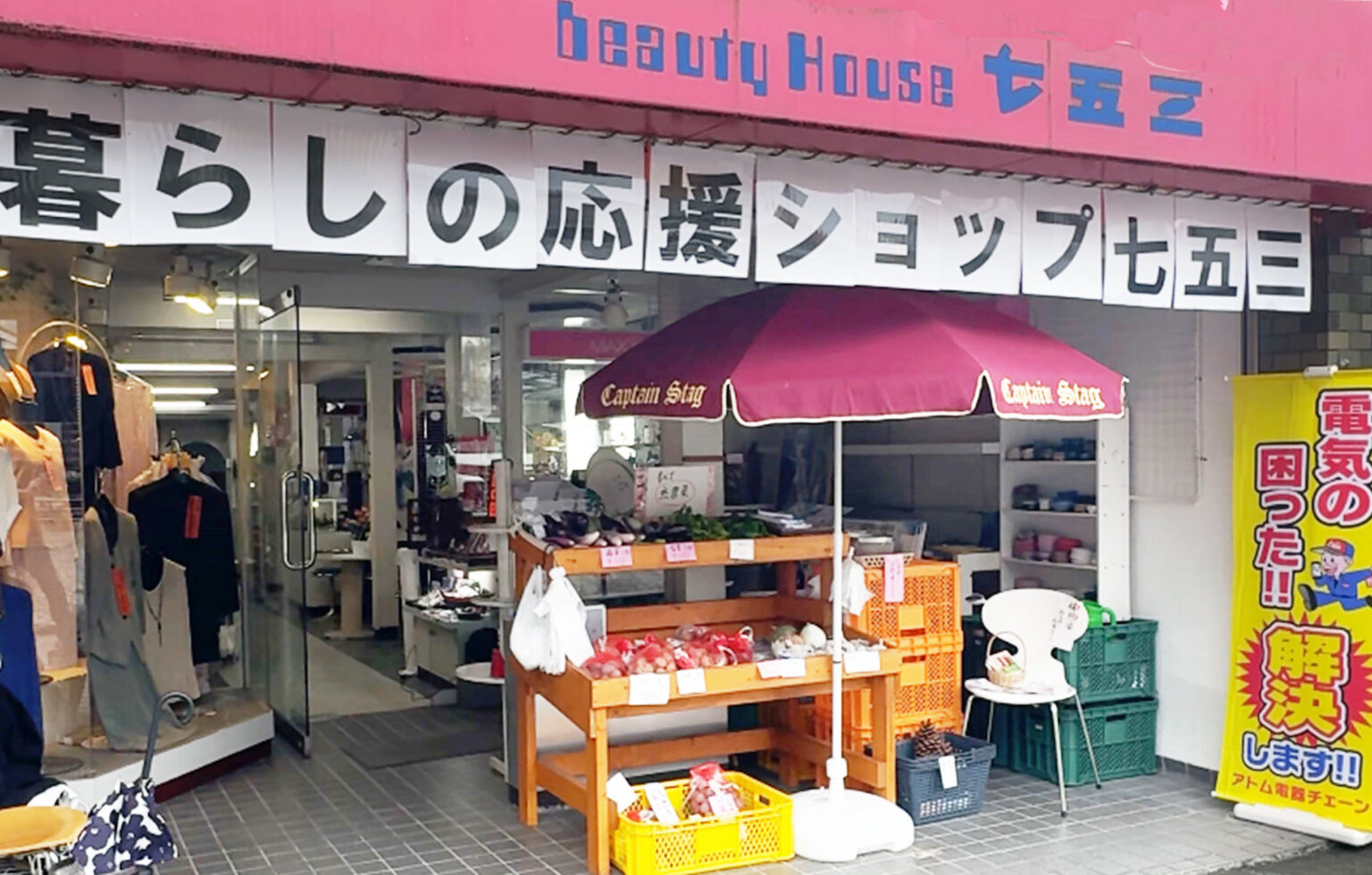 JR五条駅前、五條市・商栄会通りにて長年ご愛顧いただいております 「七五三」 が、「暮らしの応援ショップ」としてリニューアル!