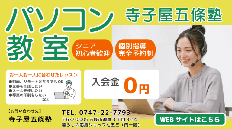 パソコン教室のお問い合わせはTEL 0747-22-7793